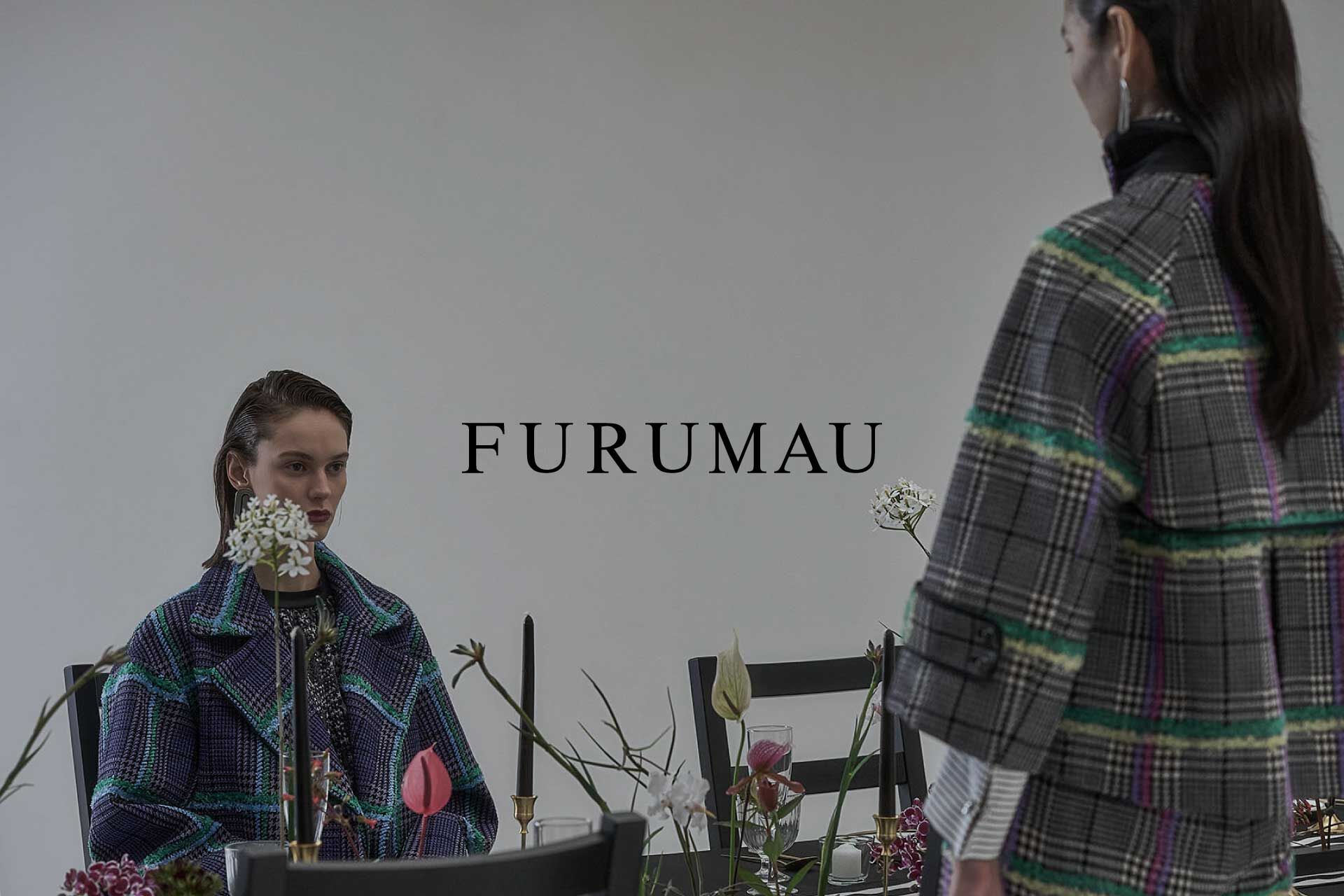 『 Furumau 』 「振る舞う」一詞,包含了多重意涵:例如「在某種場景或情境中, 以某種方式行動,讓他人感受到特定的印象」,或是「款待、招待與饗宴」等。 「振る舞う」這種行為,正是讓人得以窺見其本質的契機。對我們創作者而言,最重要的是以真誠之心款待,並細心思考穿上服裝的每一個人。對穿著者而言,這些服裝能幫助他們打磨自我本質,展現更好的自己,並且能以自然真實的樣貌去「振る舞う」。 正因為這樣的想法,「振る舞う」成為品牌名稱的由來,同時也成為我們首個系列的主題。  Look 1. 功能性優異的非羊毛材質雙排扣西裝外套・馬甲・寬褲三件式套裝。內搭以 Wholegarment 技術製成的真絲針織衫,展現出沉穩洗練的氛圍。   Look 2. 結合提洛利安織帶與流蘇的經典 × 摩登風格布料所打造的飛行員外套與直筒裙套裝。內搭以純絲針織高領,增添精緻感。 Look 3. 以金屬般質感的星形圓點點綴的針織材質套裝。荷葉下擺線條的罩衫搭配直筒裙,內襯絲質針織,營造出優雅華麗的造型。 Look 4. 結合經典與奢華,採用尾州產地花呢製成的套裝。短版立領大衣搭配寬褲的風格。 Look 5. 以具有功能性的塔夫綢與中綿製成,點綴星形小圓點刺繡的羽絨外套,搭配祖母綠色圓裙的造型。 Look 6. 使用祖母綠色三重織斜紋布製成的長版大衣,搭配具有透明感與份量感的星屑圖案裙裝的造型。 Look 7. 以全天候型三層素材製作的短版單排釦領大衣,搭配經典的提洛爾流蘇緹花單線裙,             以及帶有中性氣息的多色條紋襯衫的造型。  Look 8. 結合經典與奢華的尾州產地粗花呢長版大衣,搭配具有輕透感的星星圖案雪紡洋裝的造型。 Look 9. 以純山羊絨施加特殊拉絨加工製成的無縫針織披肩,搭配織紋精緻優雅的奢華緞面百褶裙的造型。 Look 10. 以純山羊絨海狸呢素材製作的軍裝風短版雙排釦大衣,搭配以立體表現鳥與寶石特殊印花的圓裙造型。 Look 11.以純山羊絨施加特殊拉絨加工製成的無縫針織披肩,內搭中性風的多色條紋襯衫,下身搭配垂墜感豐富的緞面慢跑褲的造型。  Look 12. 以紫色點綴的輕透星層圖案雪紡洋裝造型。  Look 13. 以三重織斜紋布打造、色澤鮮豔的紅寶石粉材質製作的長版大衣與圓裙套裝,搭配華麗粗花呢馬甲的造型。 Look 14. 以具有蓬鬆質感的三重織斜紋布,立體呈現鳥與寶石的特殊印花。運用該材質製成的長版大衣,搭配以星屑圖案薄紗打造、兼具透明感與豐富層次的多層次裙裝造型。內搭則選用帶有中性風格的多彩條紋襯衫與羊絨針織。 Look 15.金屬般光澤的星型圓點散落於針織材質上的套裝。兩側採用金屬拉鍊開衩設計的運動衫,搭配線條裙,內搭同色調的多彩條紋襯衫,營造層次造型。 Look 16.以功能性優異的非羊毛材質製作的槍格紋夾克,搭配色澤深沉的煙燻卡其色緞面百褶裙,展現經典風格。內搭則以整件立體編織工藝(WholeGarment)製成的華麗海軍藍絲質針織,提升精緻感。 Look 17.駝色調的穿搭。以多彩條紋的中性襯衫,搭配外觀似裙裝的寬褲,營造俐落中帶柔和的造型。 Look 18.以棕色槍格紋、條紋襯衫、帶有低調光澤的緞面百褶裙,及光澤緞面慢跑褲組合而成的駝色系搭配,展現材質層次間的光影變化。 Look 19. 運用混合提洛爾織帶與流蘇元素的經典摩登布料,打造的飛行外套與線條裙套裝。領口以精緻的荷葉邊細節點綴。